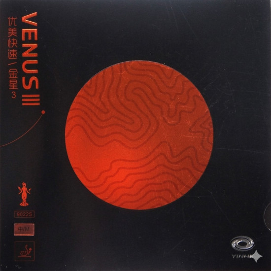 Накладка YINHE Venus 3 виконується з трьома версіями губки: Soft, Medium і Hard. У цій картці товару представлена версія Soft. Інші версії дивіться у сусідніх картках.