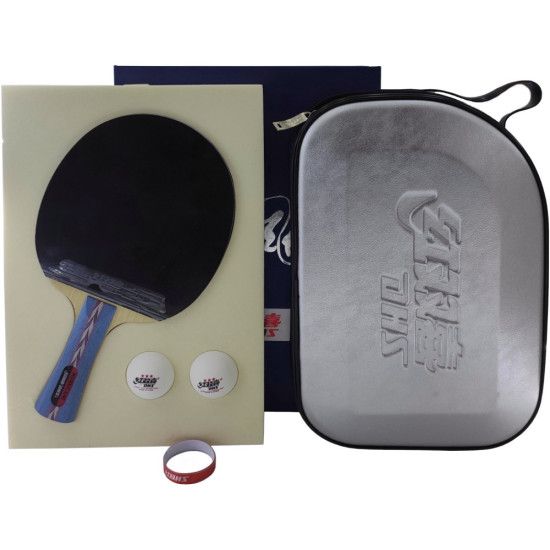 Ракетка для настільного тенісу DHS NO.2 оснащена п'ятишаровим дерев'яним підставою типу allround з FL рукояткою і накладками DHS Hurricane 3 на синьої губці і DHS G555 на помаранчевої губці. Володіє хорошим обертальним моментом і середніми показниками швидкості. Поставляється в міцній подарунковій коробці. У комплектацію набору входять: - ракетка; - чохол для ракетки з міцного зносостійкого матеріалу; - два м'ячі DHS Cell-Free Dual 40+ мм 3 *; - торцева стрічка.